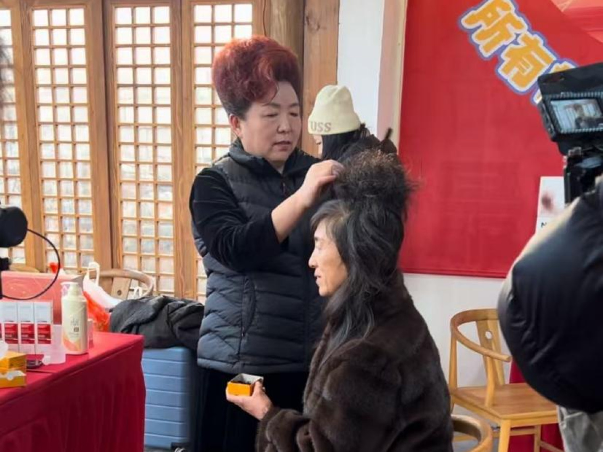 另一边,天津人朱姐用她独特的“哏儿都”式热情和精巧技艺,为女士们盘起典雅又喜庆的发髻。不少阿姨表示,这是她们几十年来第一次做这么“洋气”的发型。有位阿姨的老伴在一旁连连念叨,“这模样让我想起当年处对象时候的她!”