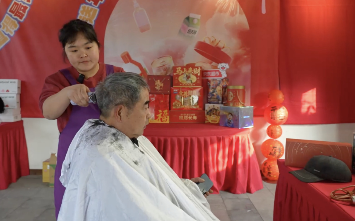 庆典当天,晓华的理发点前排起了长龙,她以一贯的亲民风格和娴熟手艺,为村里的男士们修剪发型,还聊起了家常。