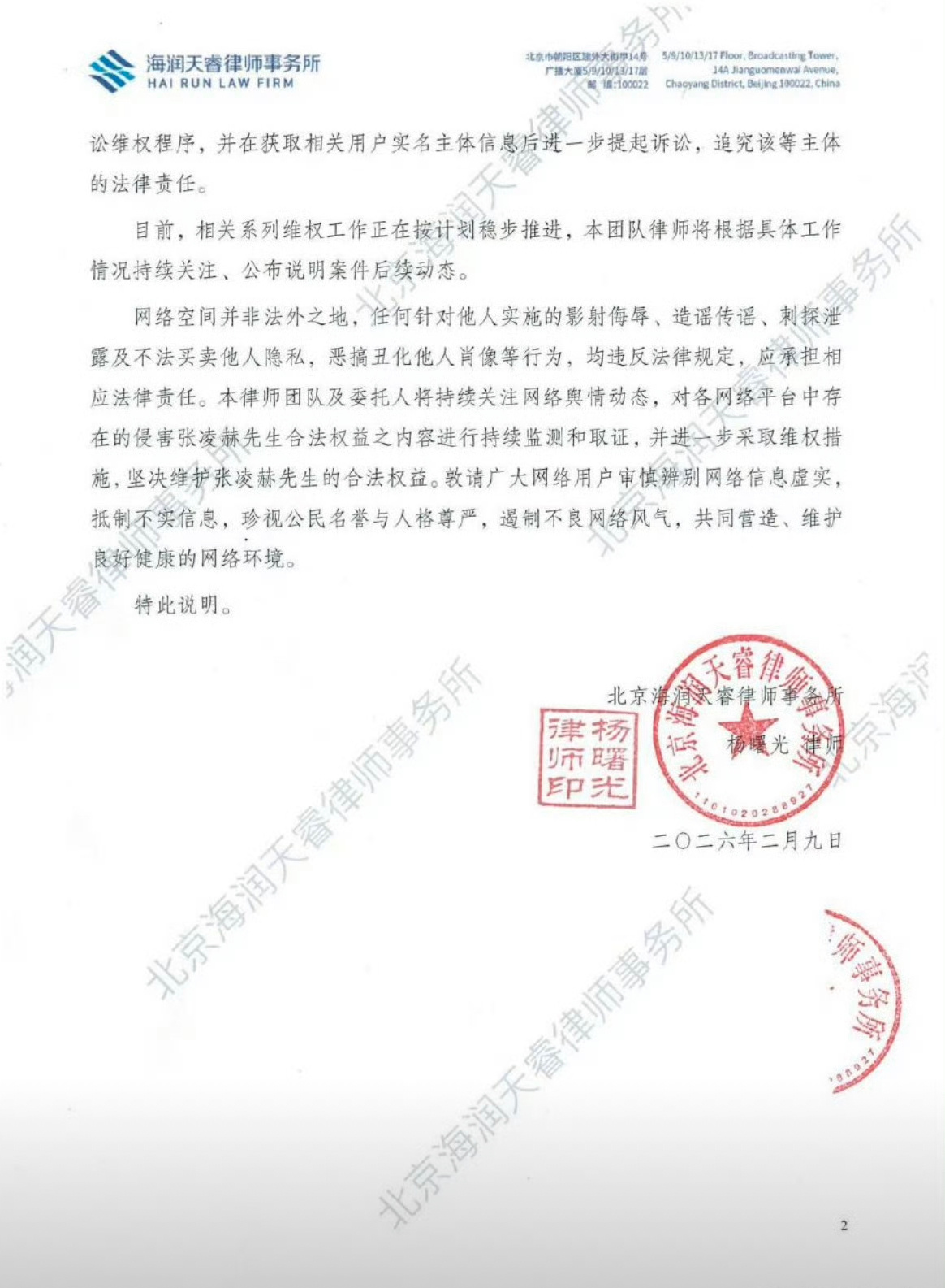 张凌赫方发布了最新的维权进度把熹蛋给告了