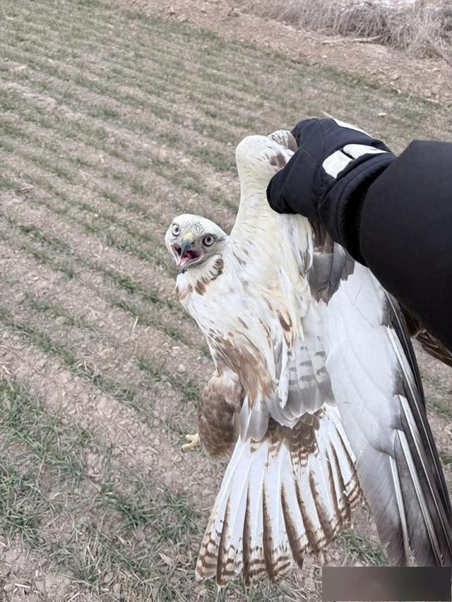 在被人戴着手套提起翅膀的刹那,那只大鸟张着嘴扭过头,眼里露出一副既无奈又不可置信的神情。它先是受伤,又在最无助的时候被一群喜鹊围观,然后被一只大手提起——它大概是觉得自己的“脸”在一天之内被丢光了。