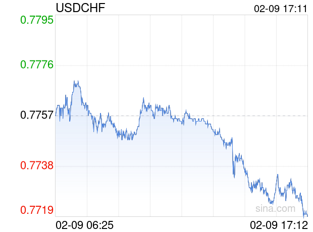 新浪外汇消息2026年02月09日,截至17时11分,外汇市场上美元兑瑞士法郎汇率跌破1美元兑换0.7718瑞士法郎。跌幅为-0.5028%