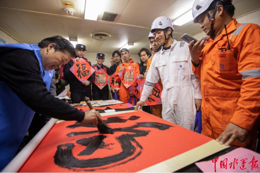 外籍船员尝试写中国福字。