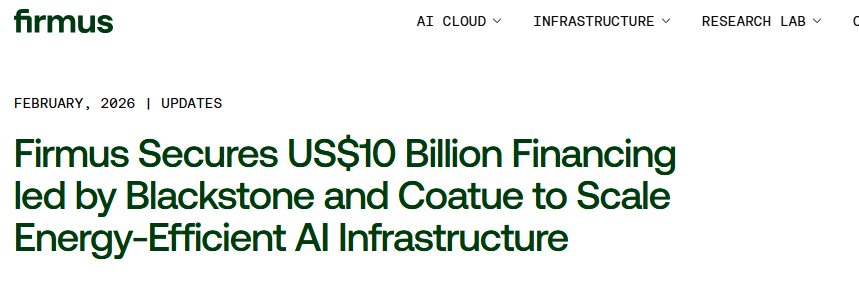 财联社2月9日讯(编辑赵昊)澳大利亚人工智能基础设施公司FirmusTechnologies宣布,从黑石集团旗下基金等投资方获得了100亿美元债务融资,用于加速人工智能(AI)工厂的部署。