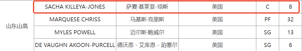 CBA官方更新外援注册信息:山东为外援琼斯完成注册