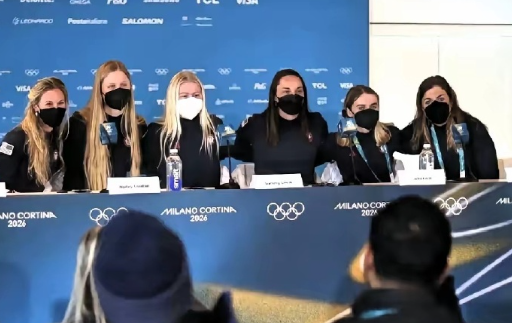 虎扑02月09日讯北京时间2月9日,博主“风清颂”晒出几张现场图,图片显示,米兰冬奥会记者会上,美国运动员全员佩戴口罩。