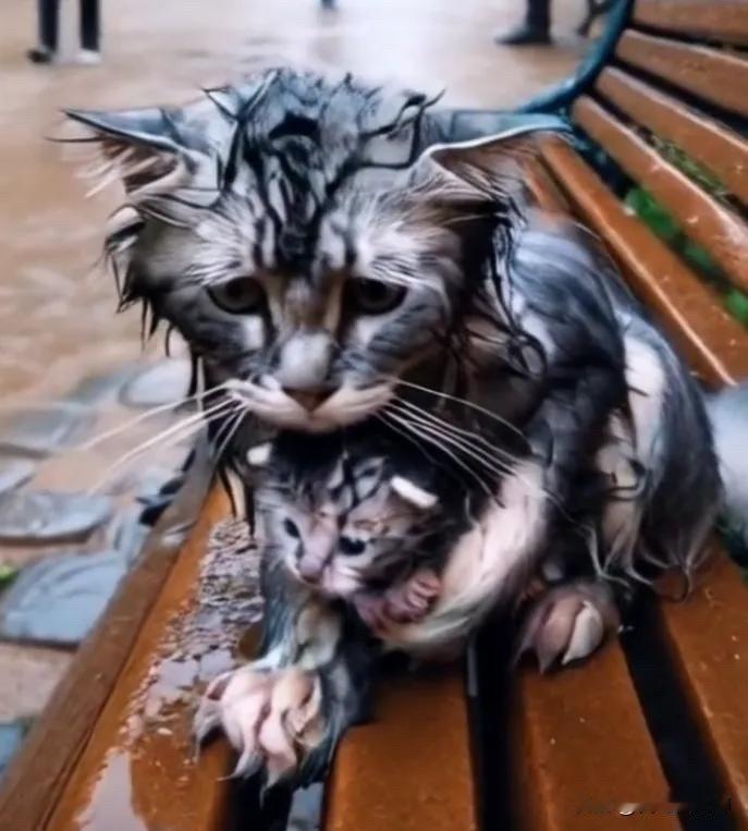 全网都泪目了。一只流浪猫领着自己的孩子到处乞食,但是换来的却是一次又一次的驱赶。哪怕天空下着暴雨,但是人们却一点同情心都没有。当流浪猫妈妈领着自己的孩子去乞求食物的时候,换来的是一次又一次的拒绝,还有一次又一次的殴打。甚至还有些人感觉它们实在太脏了,竟然一脚将它们踢了下去。流浪猫妈妈不知道自己到底做错了什么,自己的孩子只是太饿了,她想给自己的孩子找一点吃的,为什么人们一点同情心都没有?这个时候,流浪猫妈妈太伤心了,搂着自己的孩子坐在凳子上,看着远处的天空,看着瓢泼的大雨,她流下了伤心的眼泪。她不知道自己留在这个世界上的意义到底是什么,如果没有孩子……它自己是流浪猫,它的孩子也是流浪猫,它曾经所受过的苦难,它的孩子都要经历一遍。想到这些,猫妈妈伤心地哭了起来。看到猫妈妈在暴雨中哭泣,搂着自己的孩子,真的是让人泪目,让人泪奔。