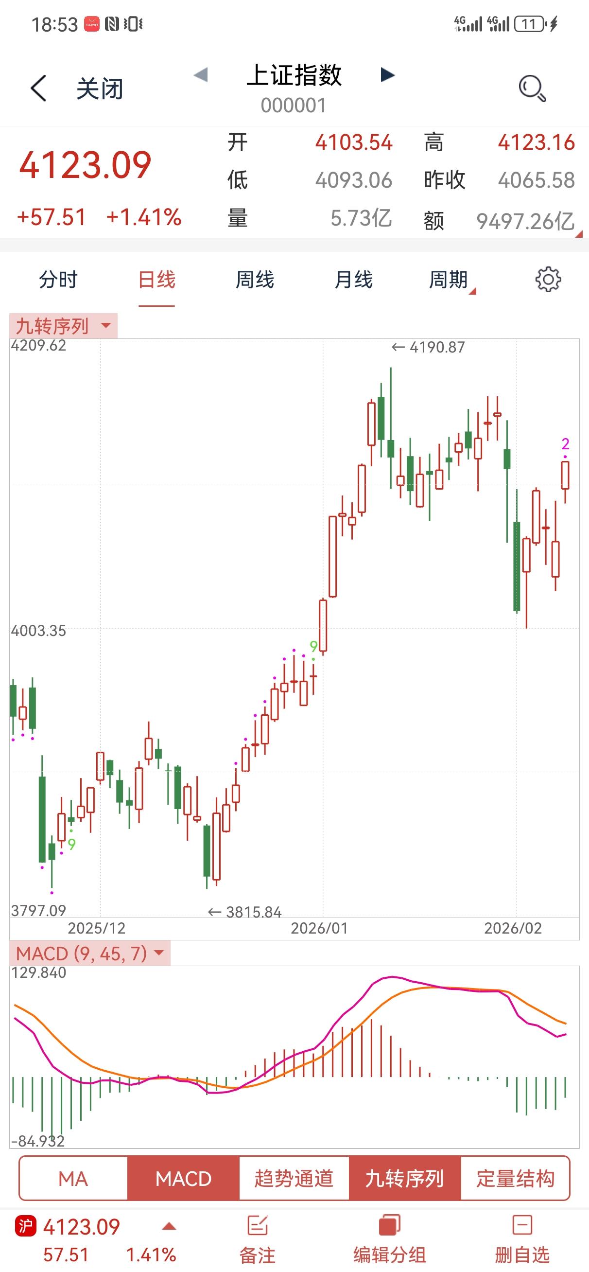 2月10日操盘笔记: 今天大盘高开高走,收大阳线,个股也是普涨。又来到了趋势通道的中轴区域,这个位置对于多空来说都没有概率优势,可上可下。但是昨天我就说了,按照历史上的经验和走势特征来看,调整周期横而不跌,就是强势特征,那么走完调整大概率还是要走上升,创新高。我说的只是概率,股市里没有绝对。我也强调过多次,这个位置最好的操作方式就是持股不动。首先你要清楚,自己不可能抓住每一次价格的波动,也不要要求自己非要最高点卖最低点买,这样就会减少很多焦虑和纠结。如果这段时间你频繁操作,那么大概率会左右打脸,快速杀跌的时候你害怕了卖出了,第二天结果又拉回来了,你又担心卖飞了再接回来,结果第三天又下跌了,形成恶性循环!我一直认为频繁交易是大忌,尤其是在单边市里。经常发生的情况是,你做来做去到最后发现还不如不动。 明日操作计划:继续持股。 至于是持股还是持币过节的问题,现在下结论还为时过早,起码要到周末再看吧,我个人更倾向于持股!
