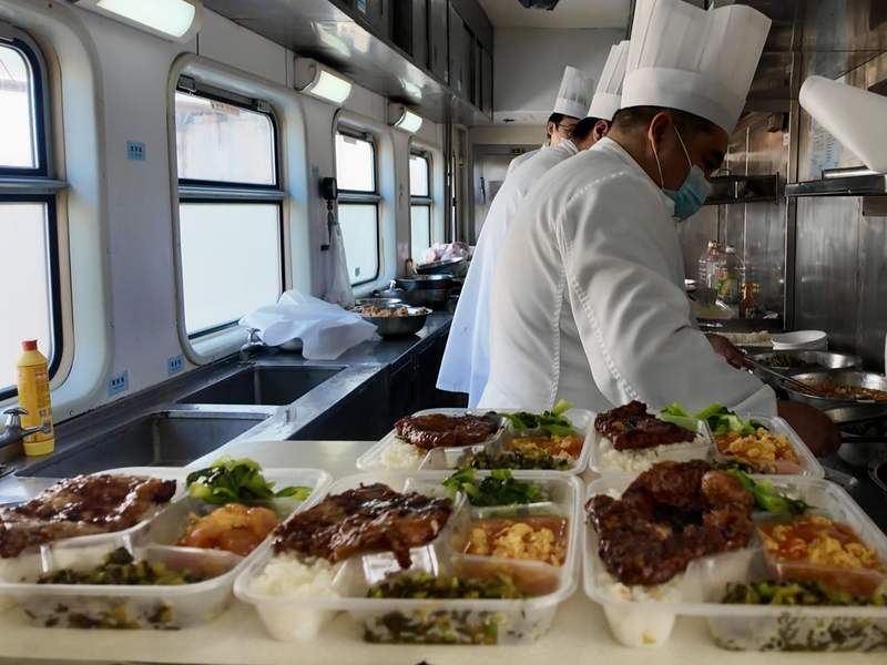 1462次列车餐车现烧的菜肴。新京报贝壳财经记者俞金旻摄