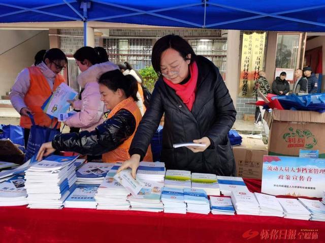(工作人员通过发放宣传资料、现场答疑等方式宣传人社各项惠民政策。)