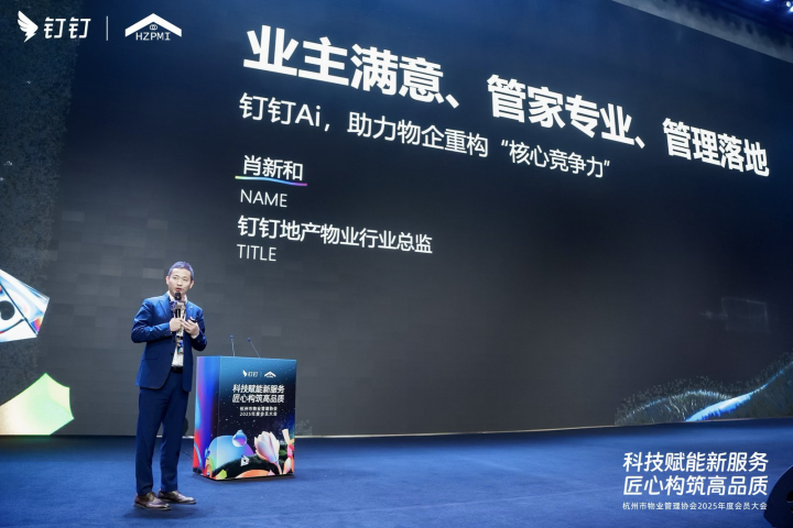 钉钉地产物业行业总监肖新和围绕物业企业关注的“业主满意、管家专业、管理落地”三大目标,系统阐述了钉钉的AI解决方案。