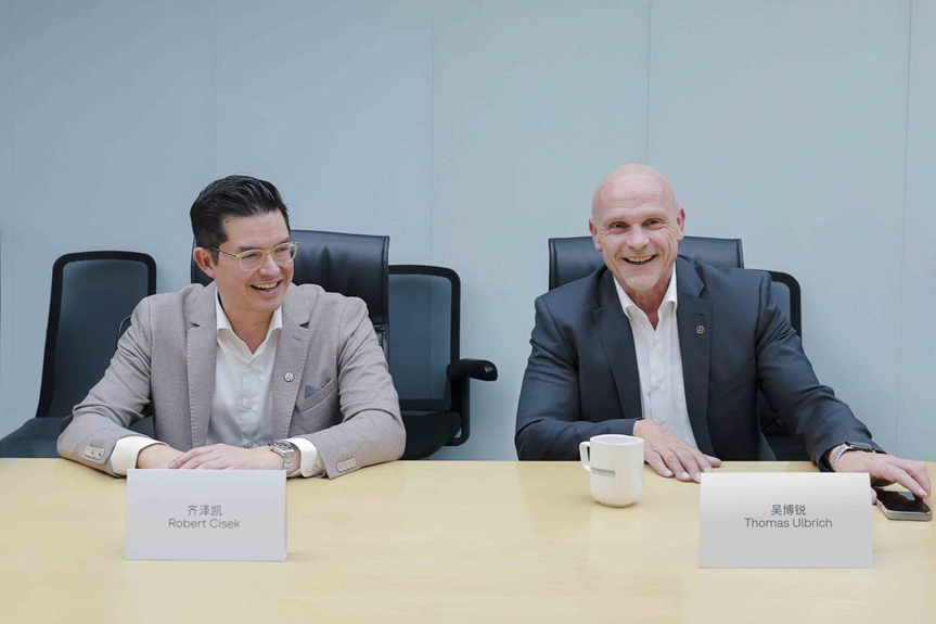 齐泽凯(左)大众汽车集团(中国)首席技术官、大众汽车(中国)科技有限公司(VCTC)首席执行官吴博锐(右)