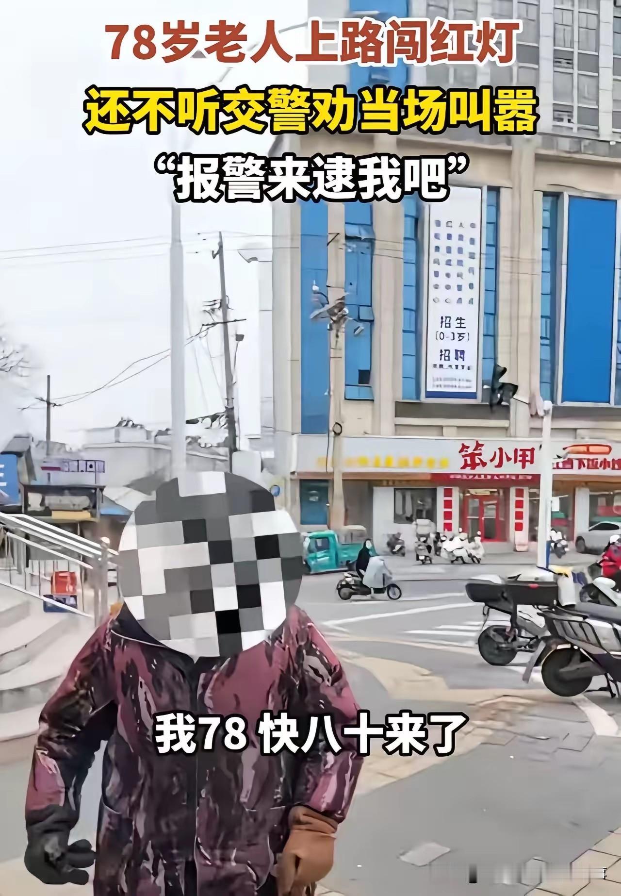 这种倚老卖老、无视规则、挑衅执法的行为,确实非常不可取,也很容易引发公众反感,核心问题不是年龄,而是规则面前人人平等。 1. 法律上:78岁并非“免罚金牌” 根据我国法律: - 已满75周岁的人违法,通常会从轻或减轻处罚,一般不执行行政拘留(人性化考量)。 - 但不代表可以违法、不代表不能处罚、更不代表可以对抗执法。 - 闯红灯本身是交通违法行为,可依法罚款、警告、批评教育; - 若辱骂、阻碍执法,还可能涉嫌妨碍公务,情节严重依然要承担法律责任。 简单说:法律对高龄是宽容,不是纵容。 2. 情理上:更不该“拿年龄耍横” - 老人更懂交通规则、更应给晚辈做榜样,而不是带头破坏秩序。 - 闯红灯本身极度危险,既是对自己生命不负责,也威胁其他行人和车辆。 - 叫嚣“你敢抓我吗”,本质是把社会善意当特权,透支公众对老年人的体谅。 3. 现实处理与态度 交警一般会: - 现场严厉批评教育,纠正违法行为; - 联系家属,督促加强看管、提醒安全; - 依法作出罚款或警告,不会因为年龄就放任不管。 真正值得尊重的老人,是守规矩、明事理、有分寸,而不是“年纪大就可以无法无天”。 素材来源于网络