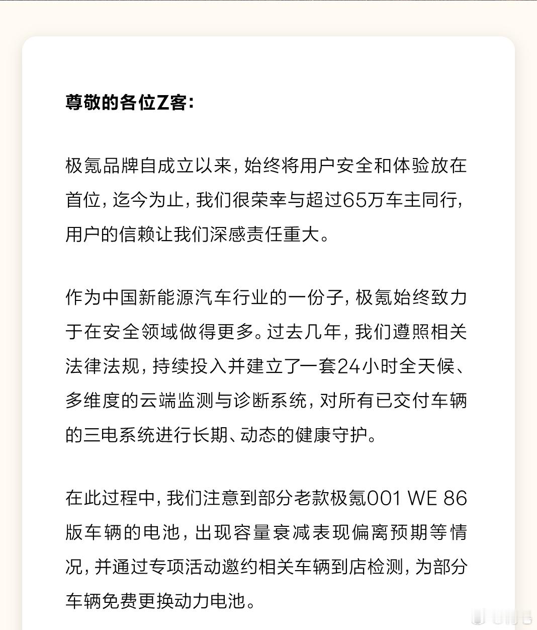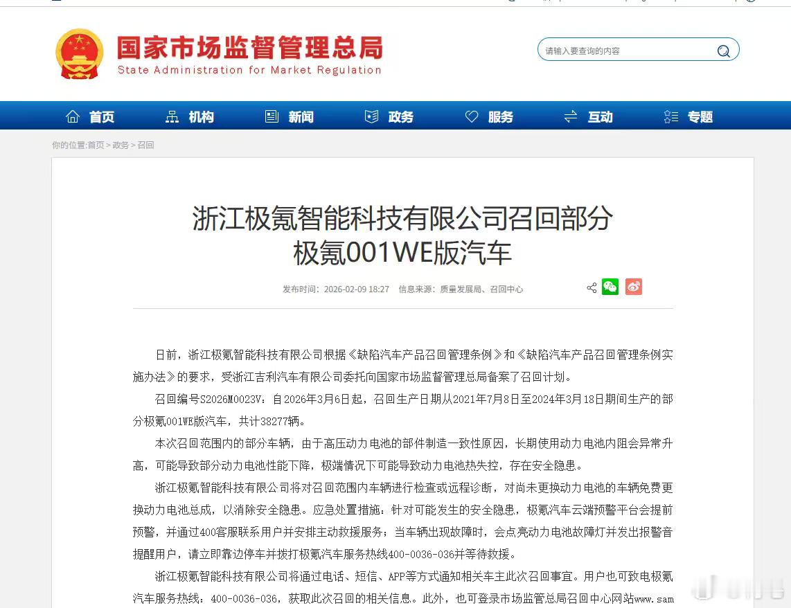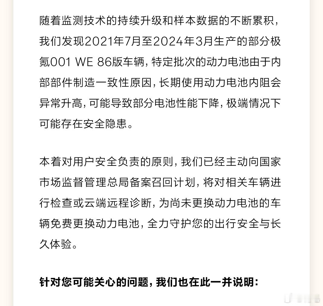 极氪老款WE86正式召回。