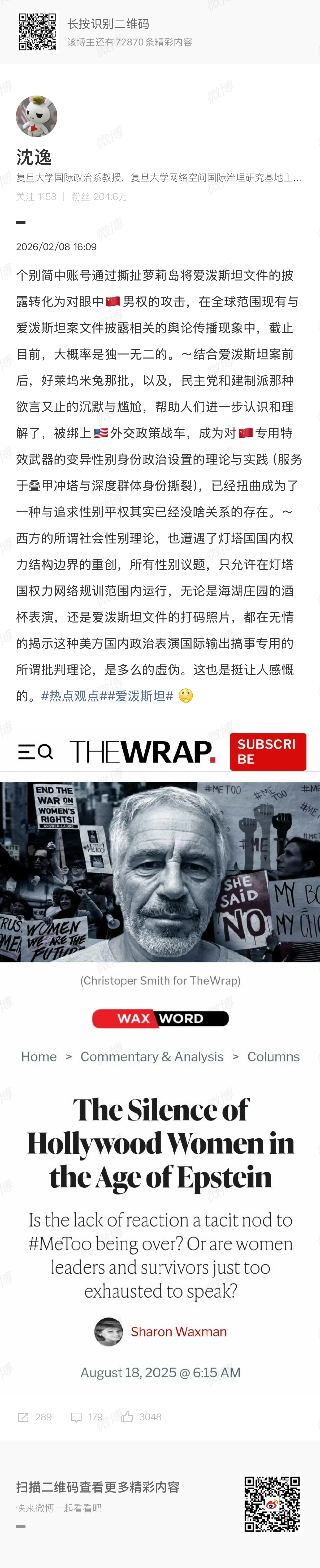 🔻我觉得沈老师说的是对的,这就是一种典型的DEM自嗨,一种画地为牢的自我封闭,关起门来在小圈子里自己赢。🔻然而,民主党在美国靠这套甚至冲不过MAGA和右翼保守派,说明这种抱团取暖也没什么大用。在爱泼斯坦事件中整个民主党的状态都还是蛮尴尬的。🔻越赢圈子越小、影响的人越少、识清本来面目的人越多。🔻所以,这种强打逆风局的情况,在全世界关于爱泼斯坦案的讨论中都很少见。🔻这种抱团取暖大概是一种什么样的场景呢?我给大家简单描述一下:大致就是转发链上的“啊啊啊啊啊啊啊啊宝宝你是个特别好的宝宝啊啊啊啊啊啊啊啊啊”这种。🔻逆风见证虔诚的信徒。热点现场海外新鲜事爱泼斯坦被爆可能没死