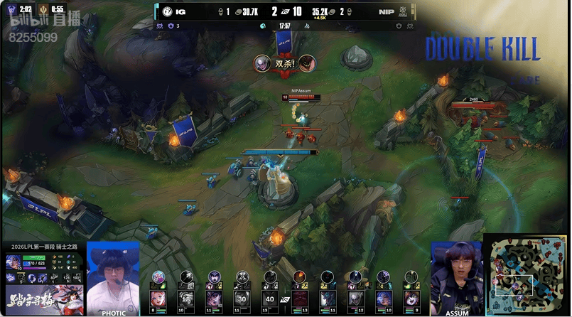 30分钟:皎月大到三人后石头人大招逃跑,NIP击杀野辅打出零换二