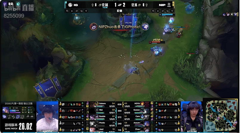 7分钟:双方下路对拼Zhuo璐璐跟闪成功线杀Photic寒冰