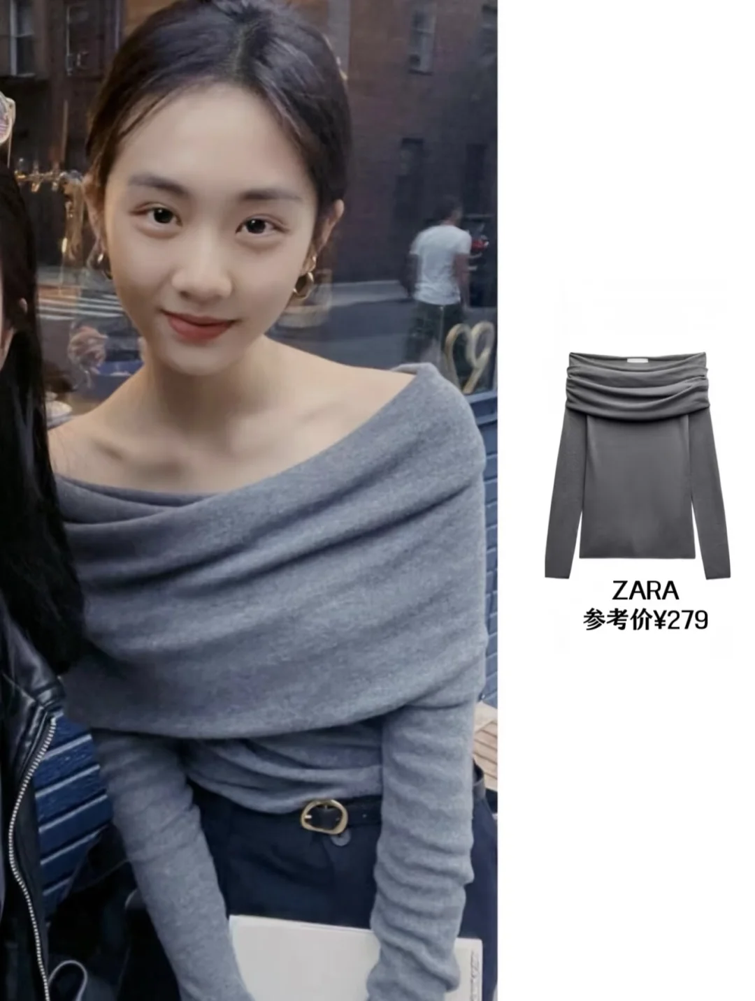 多多今日更新了,又穿了件斜肩配大素圈耳环,轻松勾勒出绝佳的文艺气质,之前在路人 还有妈妈的视频里,也有出现过一字肩,都挺好看平价的! 明星同款 明星私服黄多多 图源网络
