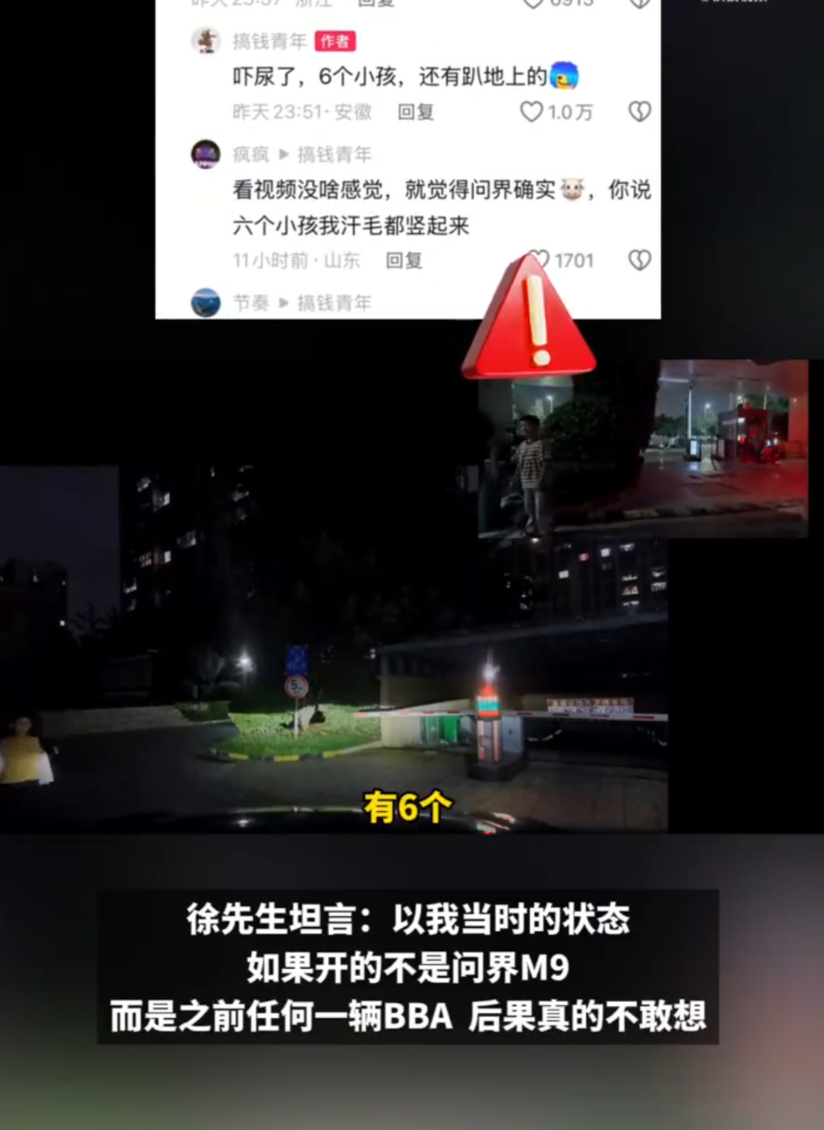 60万的车此刻值59万 这话乍一听是段子,看完徐先生在问界M9星光之夜的分享,才发现是真理!试想一下,深夜地库,视线盲区,地上趴着6个玩耍的孩子……这画面光是脑补都后背发凉。好在M9的智驾够硬核,毫秒级刹停!就像车主说的,这要是开他以前那辆车,后果真不敢想。什么是豪车?关键时刻能保命的才是真豪车!问界M9主动刹停避让盲区6个小孩