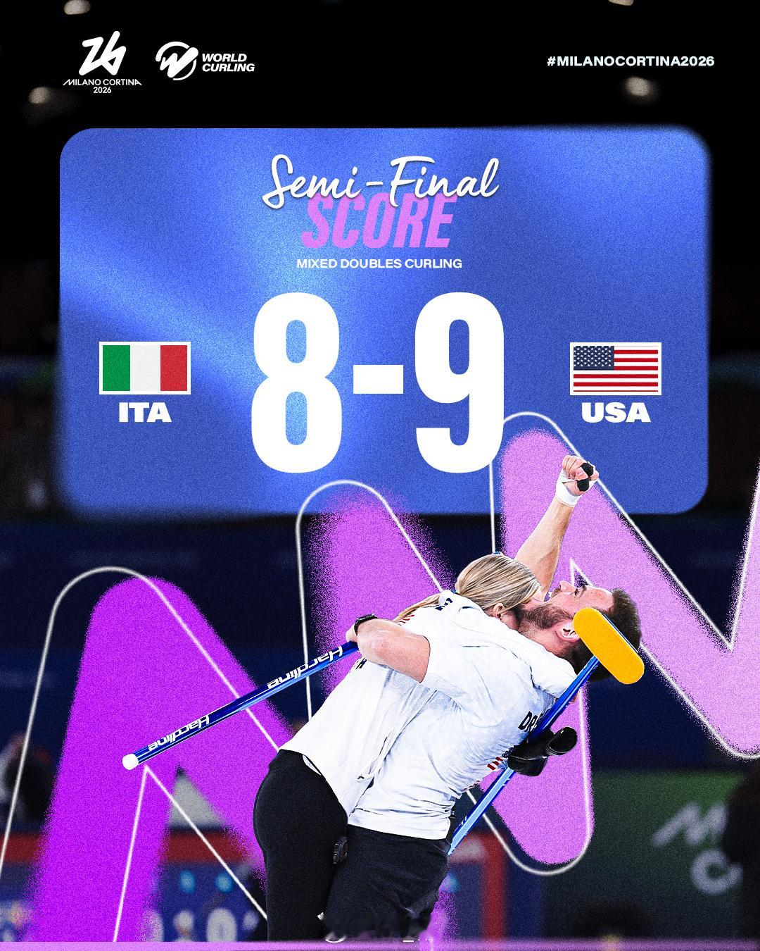 2026年米兰科尔蒂纳冬奥会 两场混双半决赛🇺🇸 9-8 🇮🇹🇸🇪