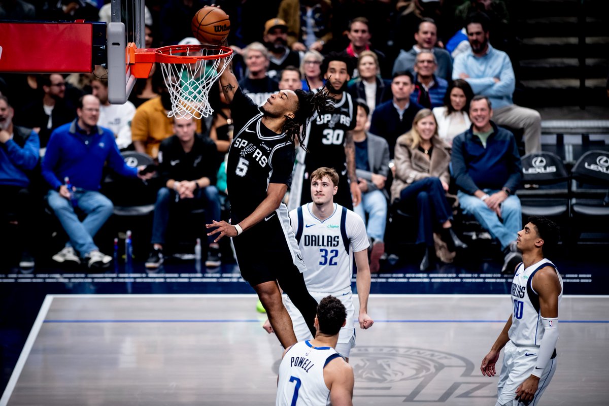 北京时间2月8日,圣安东尼奥马刺在主场以138-125大胜达拉斯独行侠,收获四连胜。本场比赛,马刺后卫斯蒂芬-卡斯尔打出了职业生涯代表作,全场仅出战31分51秒,投篮19中15,三分5中3,罚球10中7,轰下40分12篮板12助攻3抢断1盖帽的豪华数据。卡斯尔此役创造了多项历史纪录:他以78.9%的命中率砍下40分三双,成为NBA历史上第二位达成此成就的球员,上一位还要追溯到1968年的威尔特-张伯伦;21岁98天的卡斯尔也超越了"大O"奥斯卡-罗伯特森,成为NBA历史上最年轻的单场40分12篮板12助攻球员;此外,他还是马刺队史第二位拿到40分三双的球员,队史首位达成此成就的是传奇中锋大卫-罗宾逊。比赛过程中,卡斯尔首节就4投全中砍下10分3篮板3助攻2抢断,半场结束时已经8投全中得到21分5篮板7助攻。第三节他单节再砍13分3篮板3助攻,帮助马刺将领先优势扩大到20分以上。值得一提的是,卡斯尔本场仅用31分51秒就达成40+三双,这是自1970-71赛季开始统计球员出场时间以来,历史第二短的40分三双表现。赢下本场比赛后,马刺战绩来到36胜16负,继续排名西部第二,距离榜首的雷霆相差3.5个胜场。球队核心文班亚马本场贡献16分11篮板3盖帽,福克斯得到15分5助攻。独行侠方面,克莱-汤普森三分球8中4得到19分,巴格利贡献16分12篮板,但球队仍遭遇七连败。