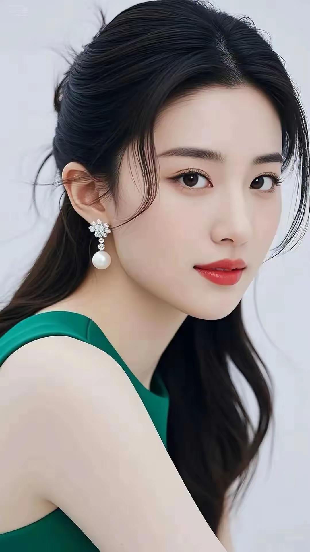 绝美画面,优雅红唇就像暗夜中的玫瑰,热烈又迷人,一下子就抓住了人的目光。绿衣更是点睛之笔,清新又独特,仿佛将春天穿在了身上。