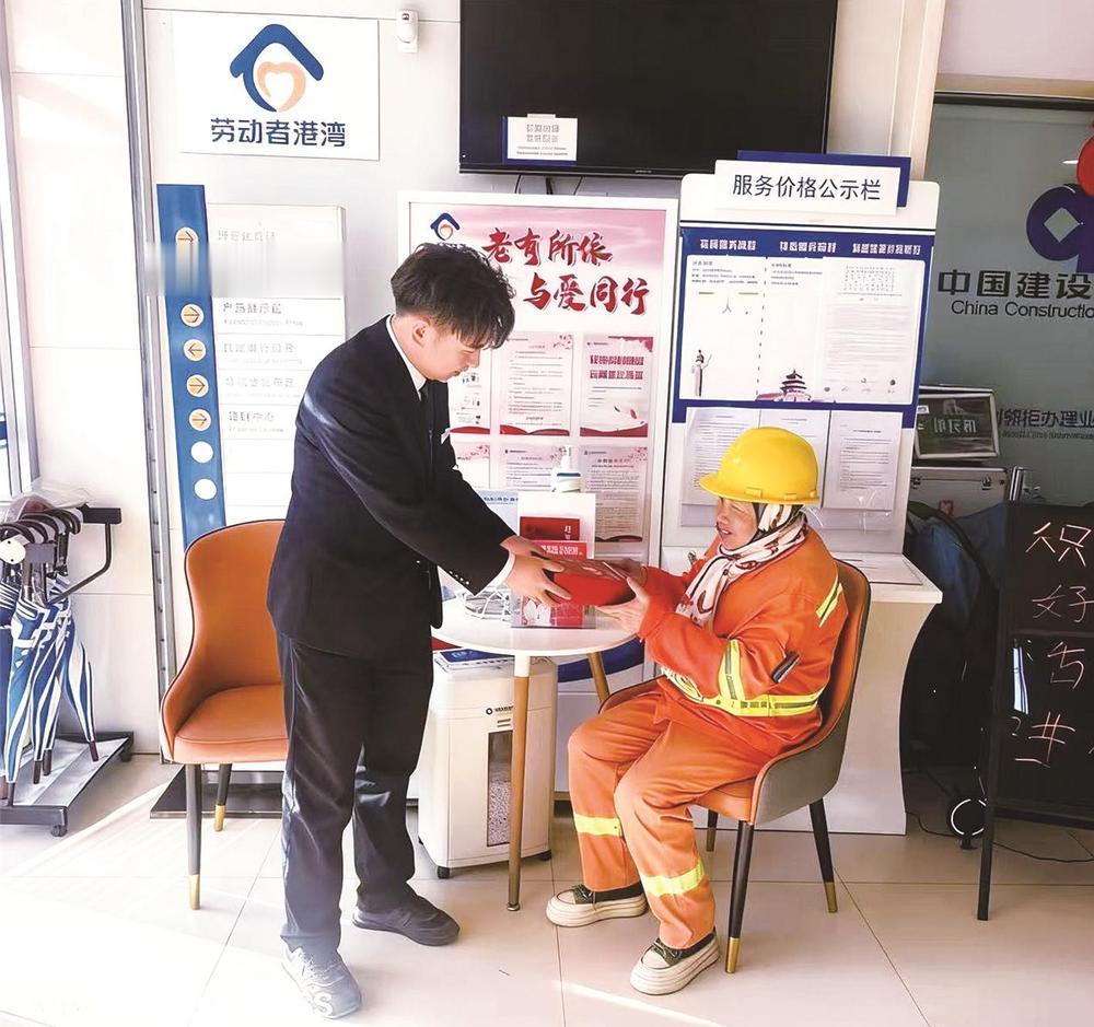 活动现场暖意融融。该支行工作人员热情引导劳动者落座休息,递上热水,详细介绍港湾各项便民服务功能。同时,该支行送上定制暖心礼包,内含实用生活物资,切实回应劳动者日常需求。大家纷纷点赞,直言“建行的服务太贴心了,不仅有地方歇脚,还惦记着我们的需求,心里特别暖”。