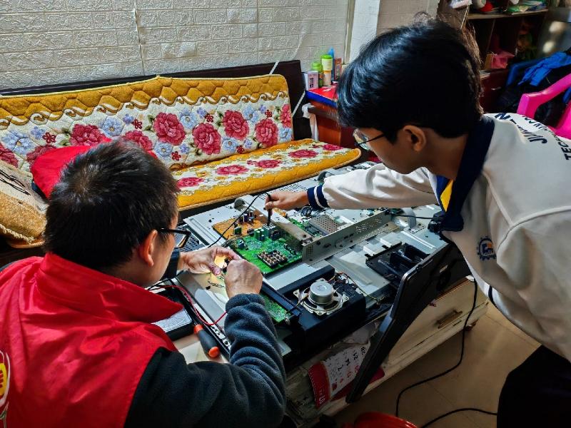 此前,江门市人力资源和社会保障局党组成员、副局长、机关党委书记吴克勇同志上门慰问时,了解到平叔的电视机损坏后只能靠听收音机解闷。在春节前修好电视是平叔的“微心愿”,但因维修费较高,一直未能如愿。获悉此情况后,局机关党委迅速与市技师学院对接,并商定由机电工程系师生上门进行维修。面对老旧电视机型复杂、零件匹配困难的挑战,市技师学院的师生们迎难而上,反复比对、多次更换配件,经过不懈努力终于让电视机重新亮起屏幕。平叔看着熟悉的画面,脸上露出欣慰的笑容,对人社部门的关怀和技师学院师生的辛勤付出表示衷心感谢。