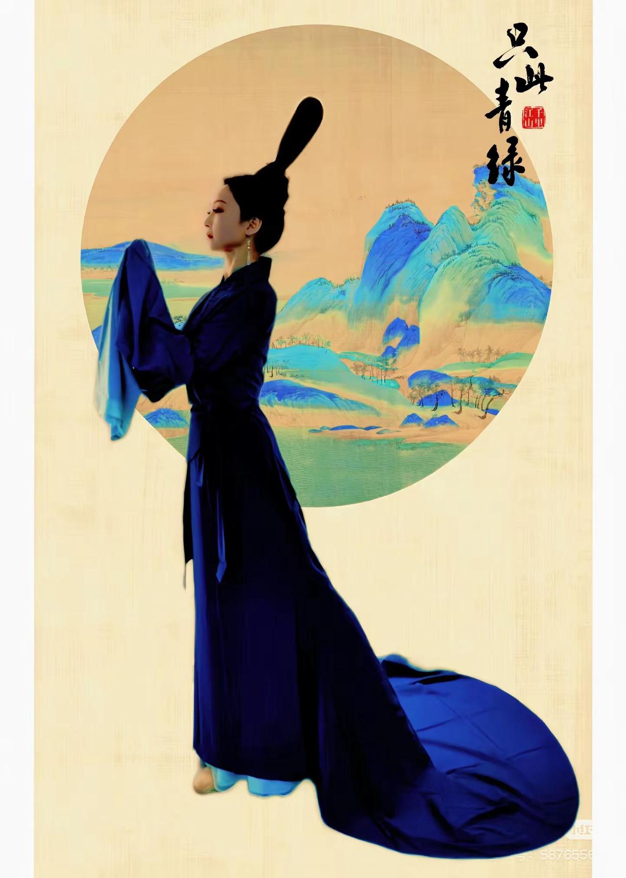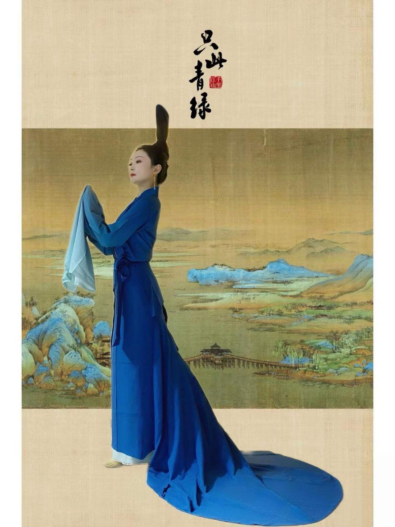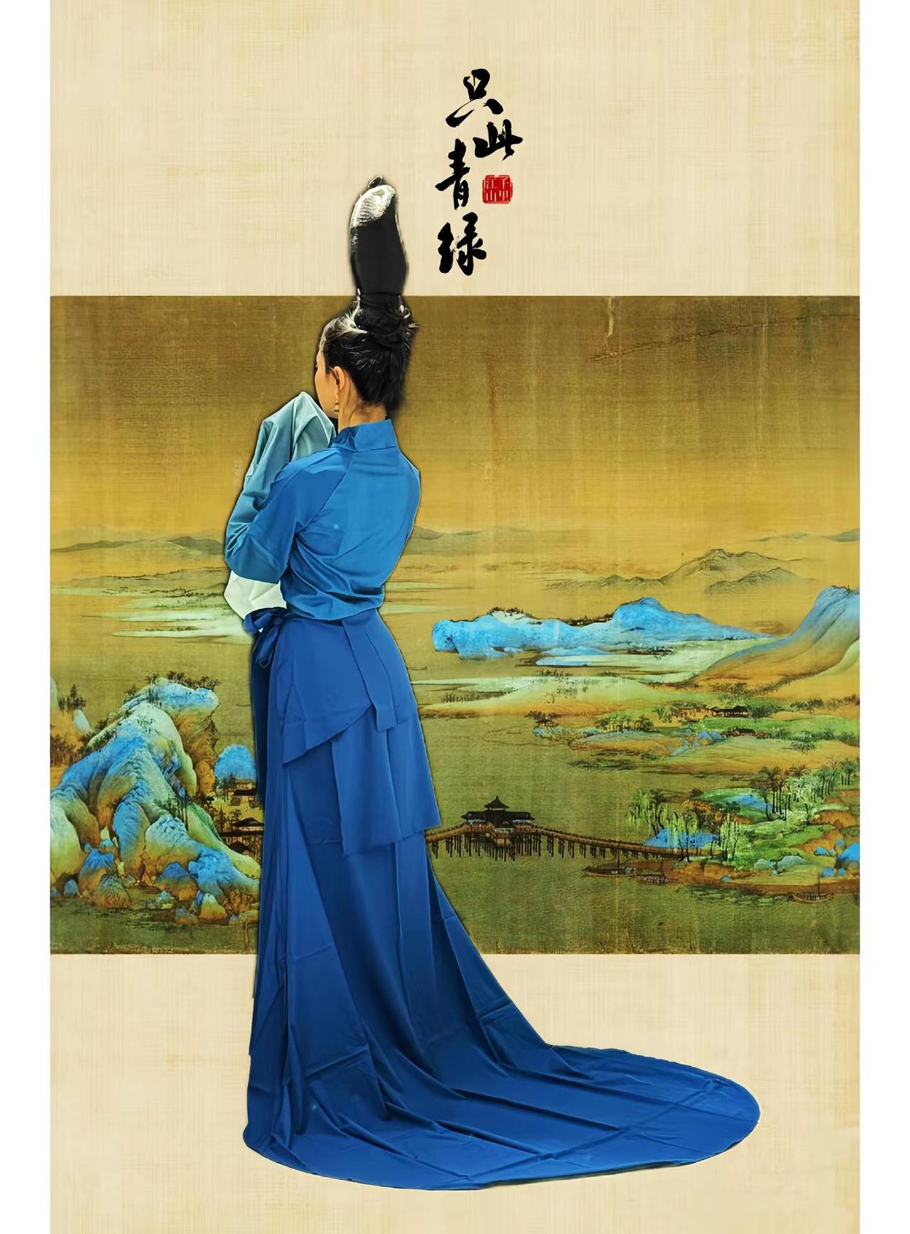 青绿千载,山河无垠,咫尺青绿,请君入画!感受宋代女子的温婉柔顺,溜肩垂背,慵懒清冷!只此青绿仿妆 东方美学