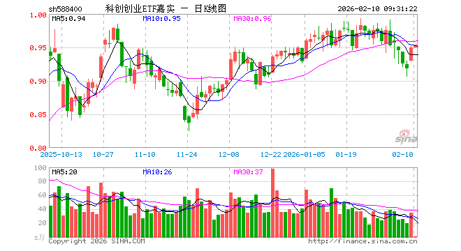 2月10日,科创创业ETF嘉实(588400)开盘涨0.00%,报0.950元。科创创业ETF嘉实(588400)重仓股方面,中际旭创开盘跌0.78%,新易盛涨0.52%,宁德时代跌0.99%,寒武纪涨1.67%,阳光电源涨0.01%,中芯国际涨0.23%,海光信息涨1.90%,胜宏科技跌0.50%,汇川技术跌0.07%,澜起科技跌0.55%。