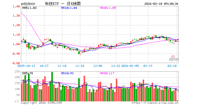 2月10日,科技ETF(515000)开盘涨0.10%,报1.042元。科技ETF(515000)重仓股方面,中际旭创开盘跌0.78%,新易盛涨0.52%,恒瑞医药涨0.02%,中芯国际涨0.23%,药明康德跌0.01%,海光信息涨1.90%,北方华创涨0.82%,胜宏科技跌0.50%,京东方A跌0.23%,兆易创新跌2.00%。