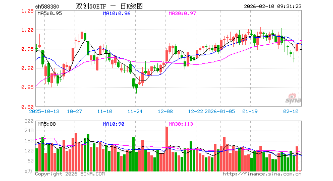 2月10日,双创50ETF(588380)开盘涨0.00%,报0.961元。双创50ETF(588380)重仓股方面,中际旭创开盘跌0.78%,新易盛涨0.52%,宁德时代跌0.99%,寒武纪涨1.67%,阳光电源涨0.01%,中芯国际涨0.23%,海光信息涨1.90%,胜宏科技跌0.50%,汇川技术跌0.07%,澜起科技跌0.55%。