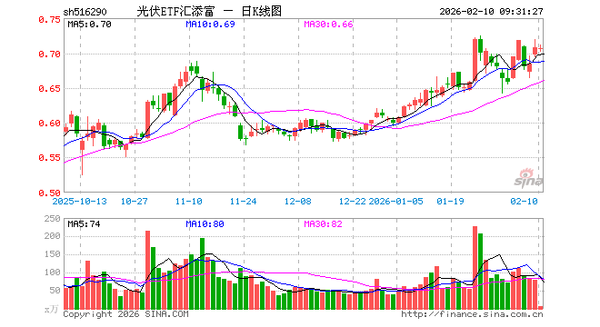 2月10日,光伏ETF汇添富(516290)开盘跌0.42%,报0.705元。光伏ETF汇添富(516290)重仓股方面,特变电工开盘跌0.25%,隆基绿能跌0.94%,阳光电源涨0.01%,TCL科技跌0.20%,通威股份跌0.84%,迈为股份跌1.80%,德业股份跌0.13%,正泰电器跌0.42%,TCL中环涨0.00%,捷佳伟创跌0.19%。