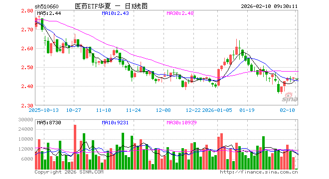 2月10日,医药ETF华夏(510660)开盘跌0.20%,报2.439元。医药ETF华夏(510660)重仓股方面,药明康德开盘跌0.01%,恒瑞医药涨0.02%,联影医疗跌0.05%,片仔癀跌0.07%,复星医药涨0.19%,百济神州涨0.00%,艾力斯涨0.16%,百利天恒跌0.50%,甘李药业涨0.03%,同仁堂跌0.03%。