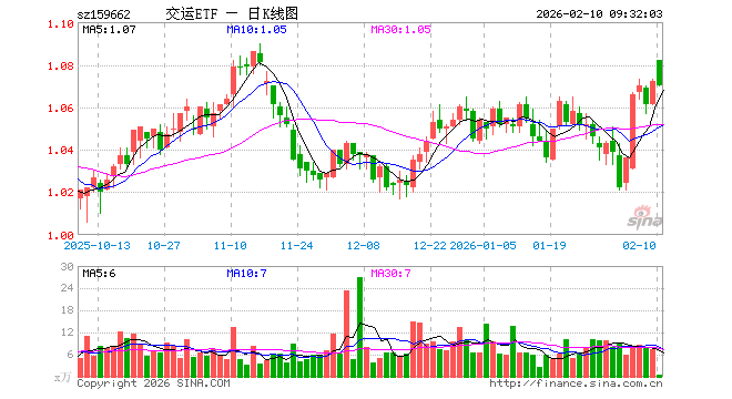 2月10日,交运ETF南方(159662)开盘涨0.93%,报1.082元。交运ETF南方(159662)重仓股方面,京沪高铁开盘跌0.20%,顺丰控股涨0.03%,中远海控跌0.07%,大秦铁路跌0.20%,中国东航涨0.16%,海航控股跌0.57%,中国国航涨0.33%,上海机场跌0.03%,南方航空涨0.24%,海南机场跌0.22%。