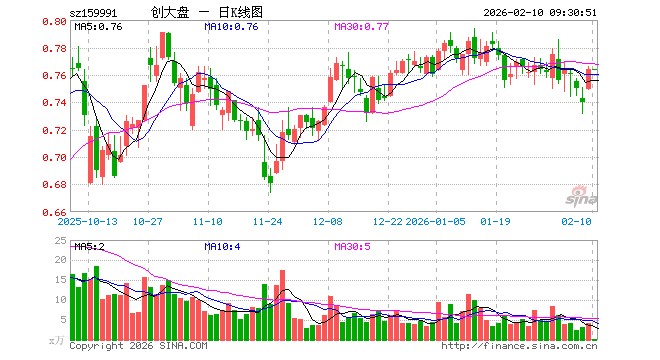 2月10日,创大盘ETF(159991)开盘涨0.00%,报0.764元。创大盘ETF(159991)重仓股方面,宁德时代开盘跌0.99%,中际旭创跌0.78%,新易盛涨0.52%,东方财富跌0.13%,阳光电源涨0.01%,胜宏科技跌0.50%,汇川技术跌0.07%,迈瑞医疗跌0.01%,天孚通信跌2.17%,亿纬锂能跌0.36%。
