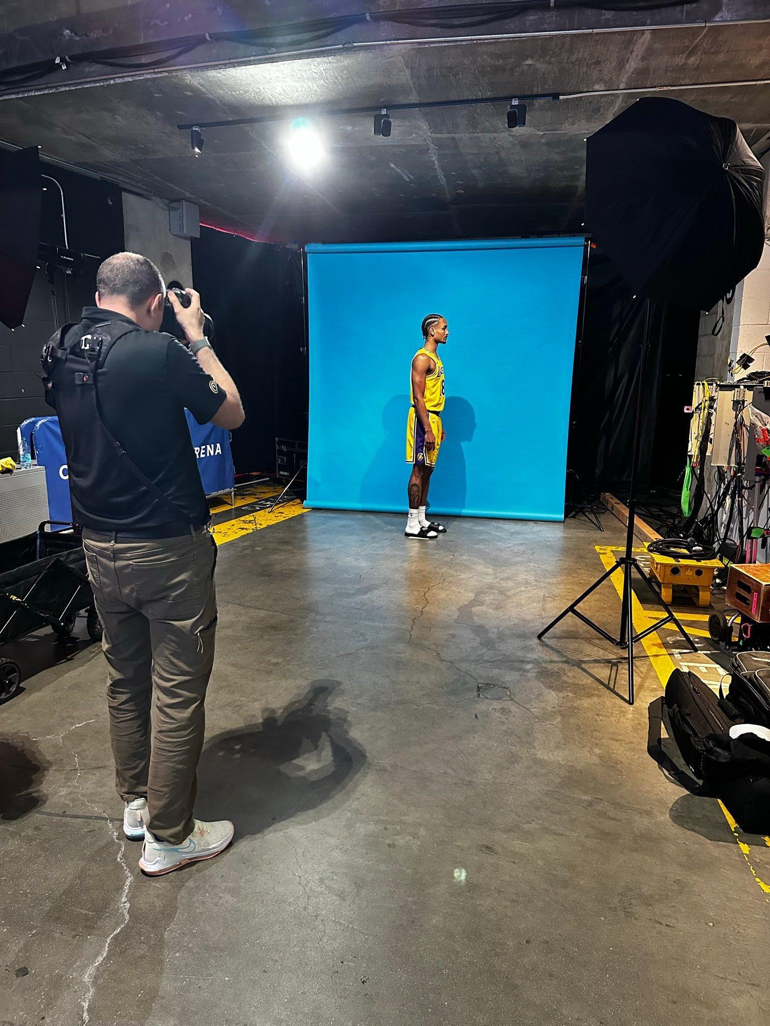 湖人第十五人巴夫金,赛前拍摄定妆照。