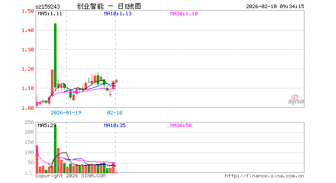 2月10日,创业板人工智能ETF招商(159243)开盘跌0.53%,报1.129元。创业板人工智能ETF招商(159243)重仓股方面,中际旭创开盘跌0.78%,新易盛涨0.52%,天孚通信跌2.17%,同花顺涨0.00%,润和软件跌0.30%,北京君正跌0.34%,昆仑万维跌0.98%,蓝色光标涨0.55%,长芯博创跌0.41%。