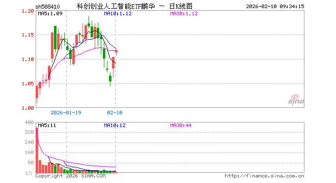 科创创业人工智能ETF鹏华(588410)业绩比较基准为中证科创创业人工智能指数收益率,管理人为鹏华基金管理有限公司,基金经理为林嵩,成立(2025-12-17)以来回报为10.42%,近一个月回报为0.98%。