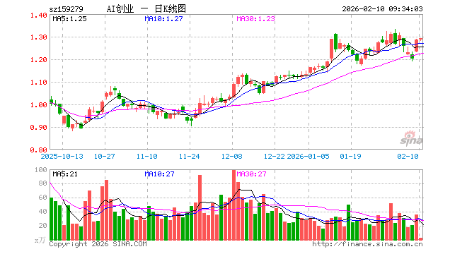 2月10日,创业板人工智能ETF华安(159279)开盘跌0.16%,报1.285元。创业板人工智能ETF华安(159279)重仓股方面,中际旭创开盘跌0.78%,新易盛涨0.52%,天孚通信跌2.17%,蓝色光标涨0.55%,协创数据跌1.10%,同花顺涨0.00%,润和软件跌0.30%,北京君正跌0.34%,昆仑万维跌0.98%。