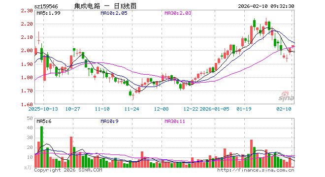 2月10日,集成电路ETF(159546)开盘涨0.45%,报2.023元。集成电路ETF(159546)重仓股方面,寒武纪开盘涨1.67%,中芯国际涨0.23%,海光信息涨1.90%,兆易创新跌2.00%,澜起科技跌0.55%,豪威集团涨0.03%,紫光国微跌0.01%,长电科技涨0.02%,芯原股份涨2.00%,通富微电涨0.12%。