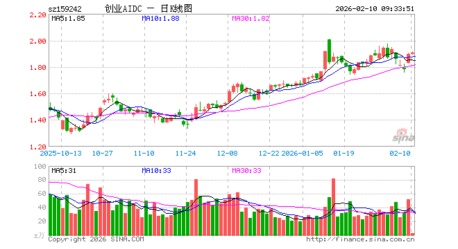 2月10日,创业板人工智能ETF大成(159242)开盘涨0.05%,报1.897元。创业板人工智能ETF大成(159242)重仓股方面,中际旭创开盘跌0.78%,新易盛涨0.52%,天孚通信跌2.17%,蓝色光标涨0.55%,协创数据跌1.10%,同花顺涨0.00%,润和软件跌0.30%,北京君正跌0.34%,昆仑万维跌0.98%。