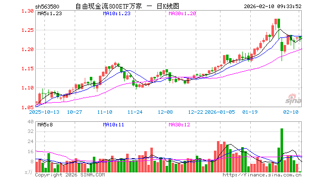 自由现金流800ETF万家(563580)业绩比较基准为中证800自由现金流指数收益率,管理人为万家基金管理有限公司,基金经理为贺方舟,成立(2025-07-16)以来回报为22.91%,近一个月回报为4.87%。