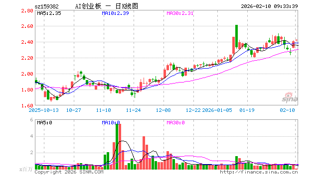 2月10日,创业板人工智能ETF南方(159382)开盘涨0.29%,报2.413元。创业板人工智能ETF南方(159382)重仓股方面,中际旭创开盘跌0.78%,新易盛涨0.52%,天孚通信跌2.17%,蓝色光标涨0.55%,协创数据跌1.10%,同花顺涨0.00%,润和软件跌0.30%,北京君正跌0.34%,昆仑万维跌0.98%。