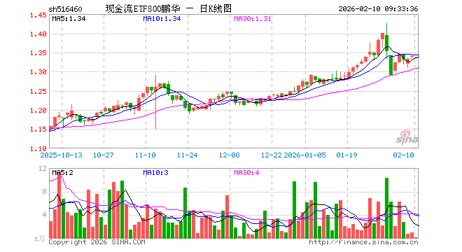 现金流ETF800鹏华(516460)业绩比较基准为中证800自由现金流指数收益率,管理人为鹏华基金管理有限公司,基金经理为寇斌权,成立(2025-04-17)以来回报为34.11%,近一个月回报为4.77%。