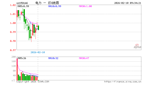 2月10日,电力ETF华宝(159146)开盘涨0.00%,报0.997元。电力ETF华宝(159146)重仓股方面,长江电力开盘涨0.00%,中国核电涨0.00%,三峡能源涨0.00%,国电电力涨0.00%,永泰能源涨0.61%,华能国际涨0.00%,国投电力跌0.08%,川投能源跌0.07%,中国广核涨0.00%,上海电力涨0.00%。