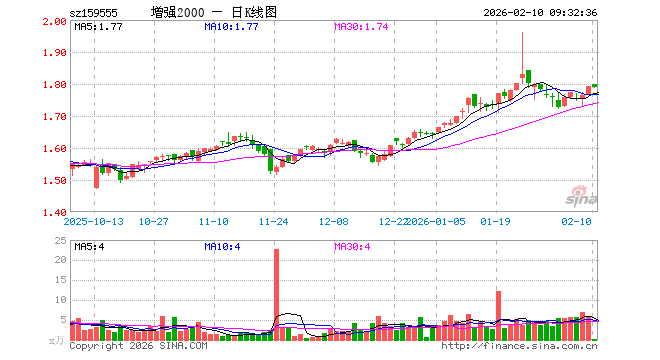 2000增强ETF(159555)业绩比较基准为中证2000指数收益率,管理人为银华基金管理股份有限公司,基金经理为张凯、张亦驰,成立(2023-12-01)以来回报为78.96%,近一个月回报为3.91%。