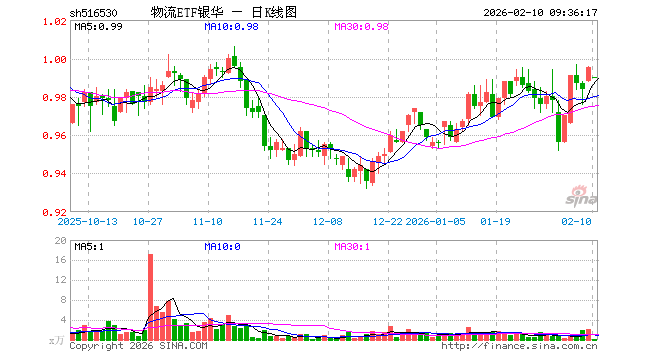 2月10日,物流ETF银华(516530)开盘跌0.50%,报0.990元。物流ETF银华(516530)重仓股方面,中远海控开盘跌0.07%,顺丰控股涨0.03%,京沪高铁跌0.20%,招商轮船跌0.25%,大秦铁路跌0.20%,圆通速递跌0.22%,蔚蓝锂芯涨0.00%,中远海能涨0.12%,物产中大涨0.17%,建发股份跌0.10%。
