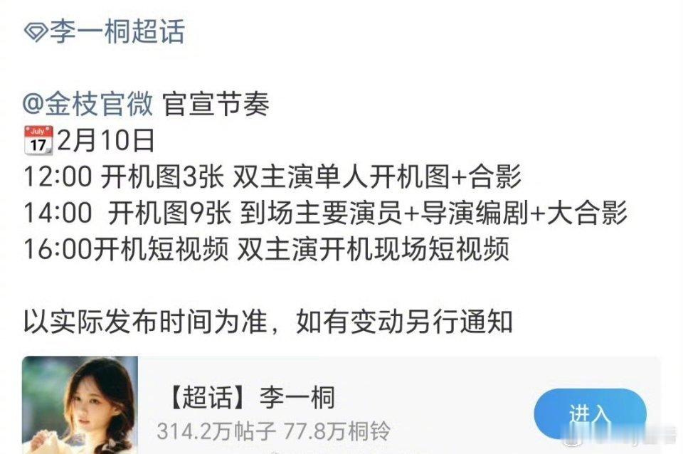 陈星旭李一桐金枝今日开机金枝开机官宣