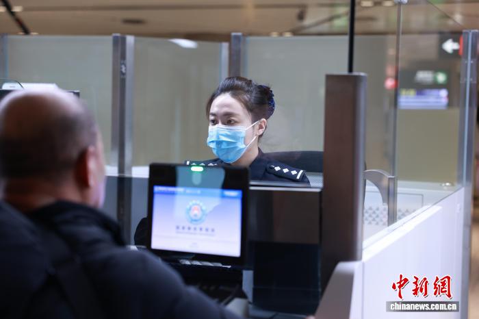 哈尔滨出入境边防检查站移民管理警察为入境旅客办理通关手续。陈尚楠摄