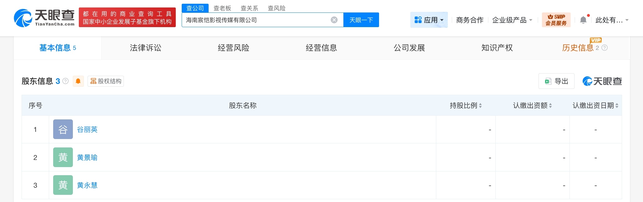 黄景瑜成立影视传媒公司黄景瑜新公司叫宸恺天眼查工商信息显示,近日,海南宸恺影视传媒有限公司成立,法定代表人为谷丽英,注册资本500万人民币,经营范围含电影发行、电视剧发行、广播电视节目制作经营、电视剧制作、营业性演出、演出经纪、文化娱乐经纪人服务、个人商务服务等。股东信息显示,该公司由黄景瑜、黄永慧、谷丽英共同持股。